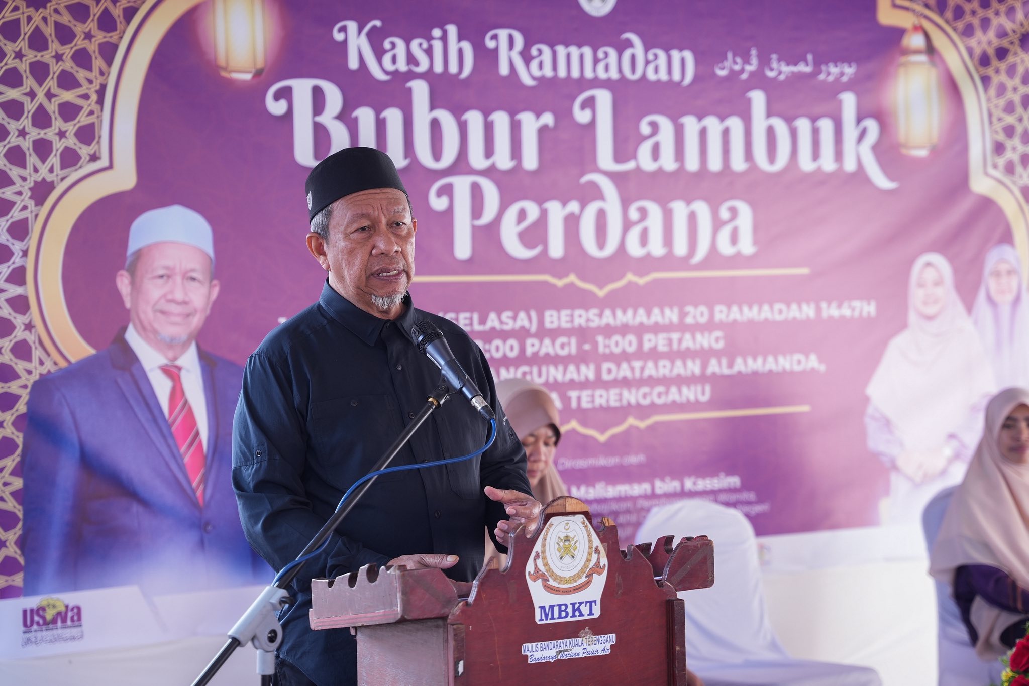 KUALA TERENGGANU, 10 Mac – Jawatankuasa Kebajikan, Pembangunan Wanita, Keluarga dan Perpaduan Nasional Negeri dengan kerjasama Urus Setia Wanita Terengganu (USWa) mengagihkan sebanyak 3,000 bekas bubur lambuk kepada orang ramai bagi memeriahkan sambutan bulan Ramadan tahun ini.
