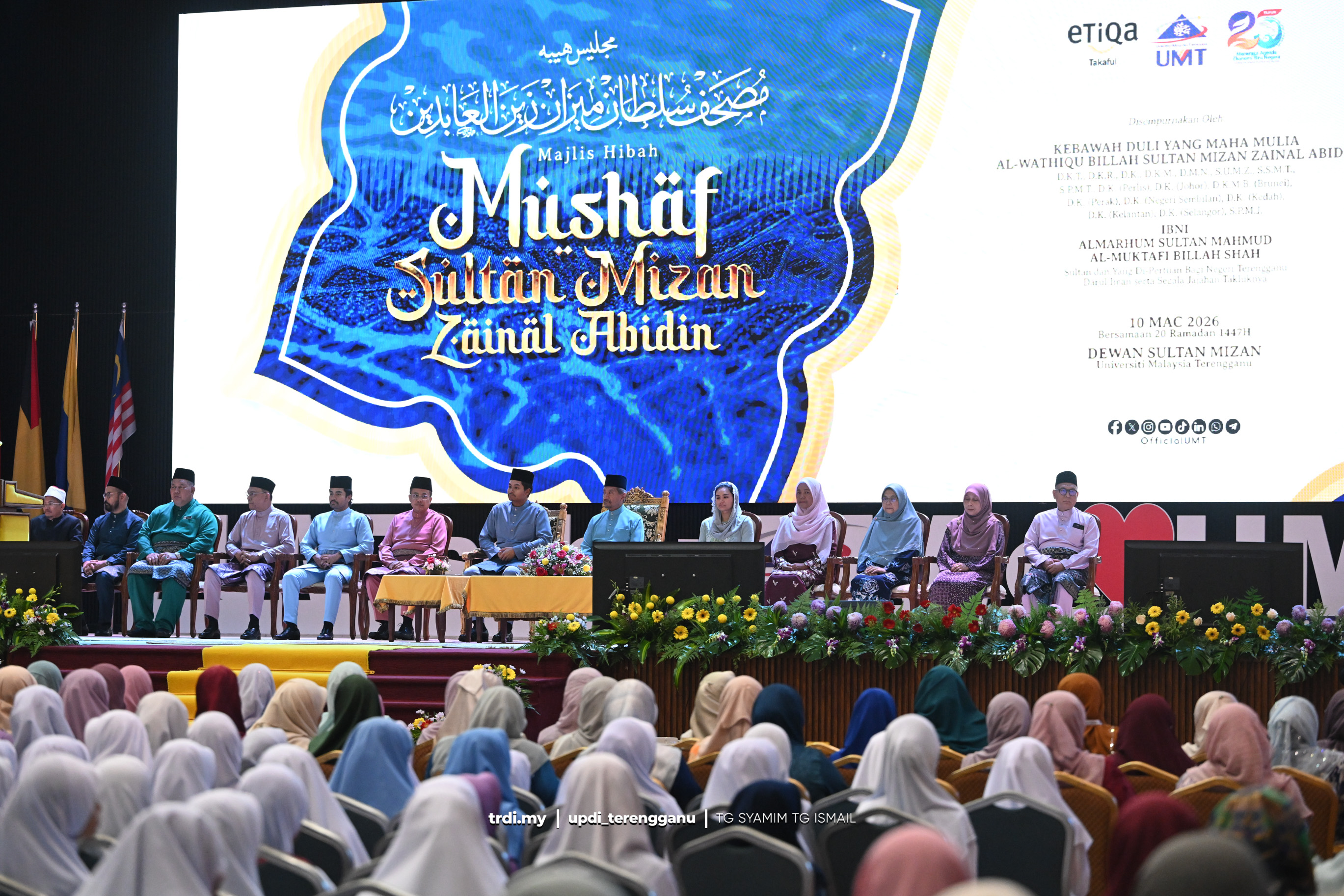 Sultan Terengganu, DYMM Sultan Mizan Zainal Abidin turut berkenan mencemar duli menyempurnakan sumbangan zakat kepada 10 asnaf mahasiswa UMT dan 207 asnaf murid sekolah rendah dan menengah dalam majlis berkenaan.