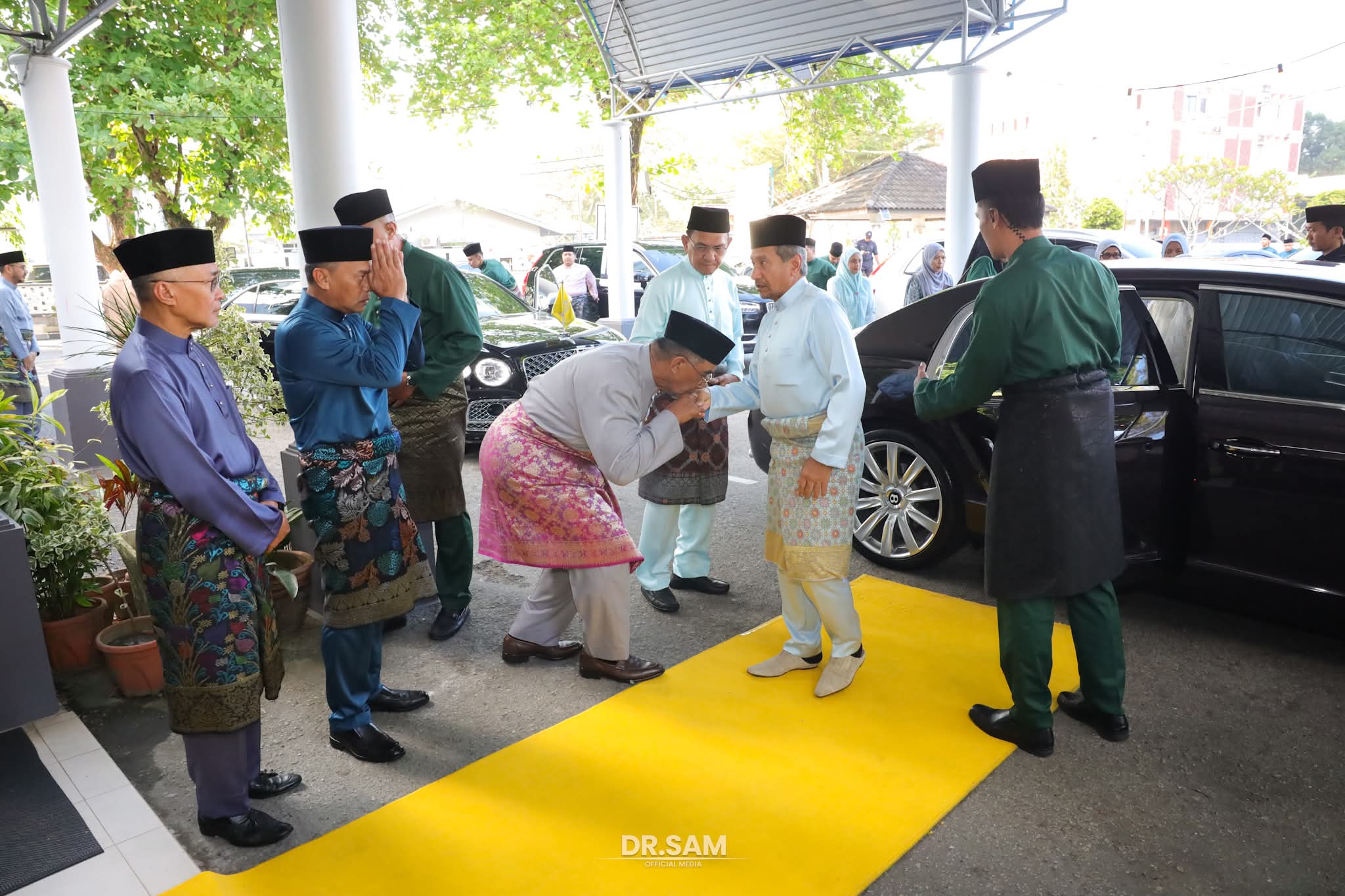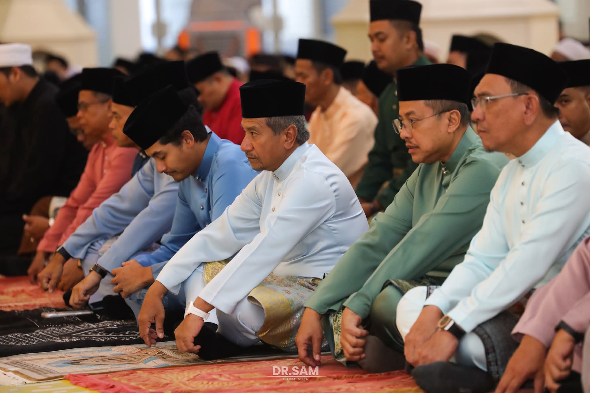 Selepas selesai menunaikan solat Aidifiltri, baginda dan paduka-paduka anakanda berkenan mencemar duli meluangkan masa bersalaman bersama rakyat jelata diiringi bacaan selawat.