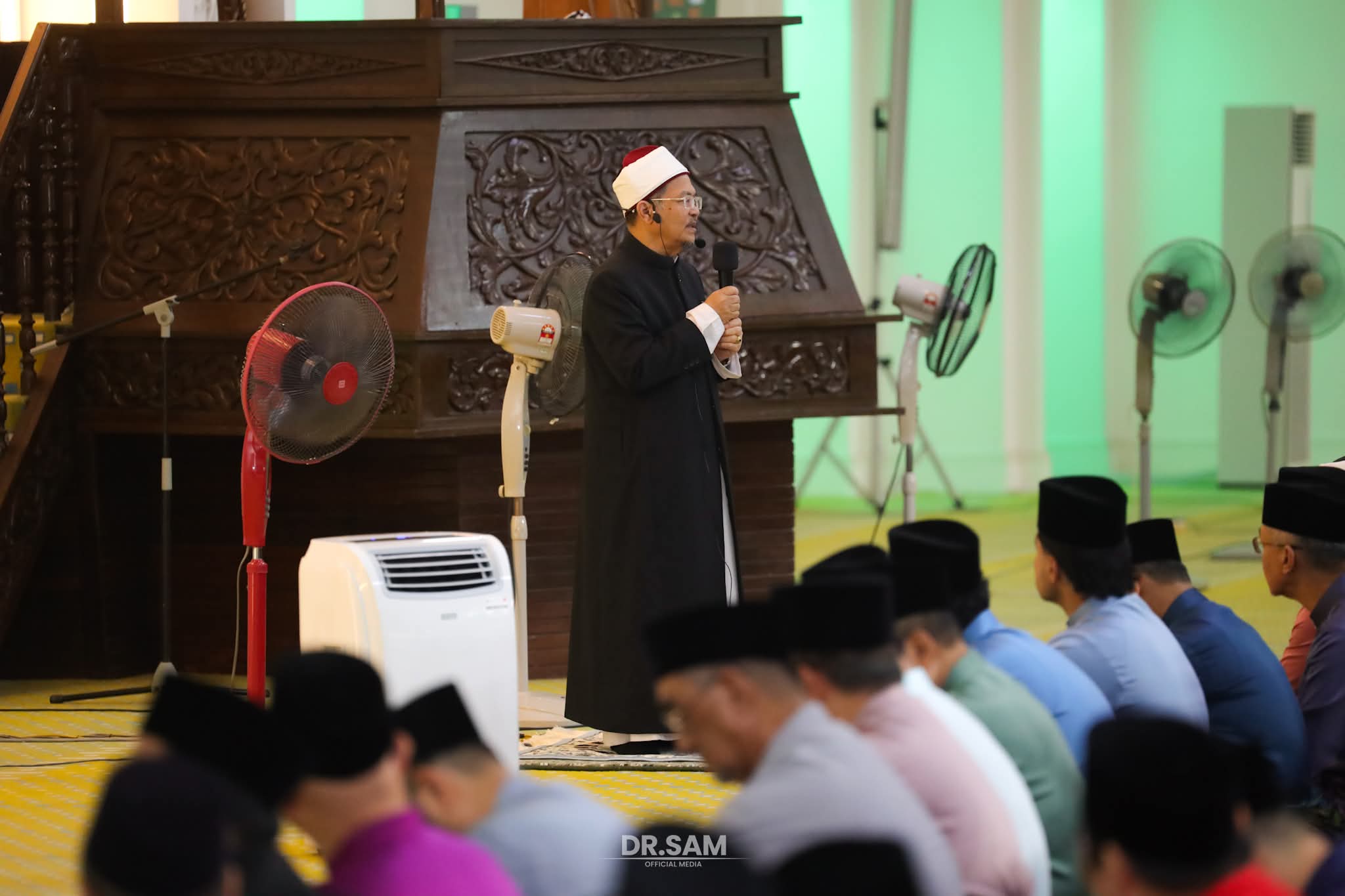 Sebelum menunaikan solat Aidilfitri pada jam 8.30 pagi, Dr. Mohamad Sabri memberi taklimat ringkas solat sunat Aidilfitri sebelum mengetuai jemaah dalam menunaikan solat sunat hari raya di masjid tersebut.