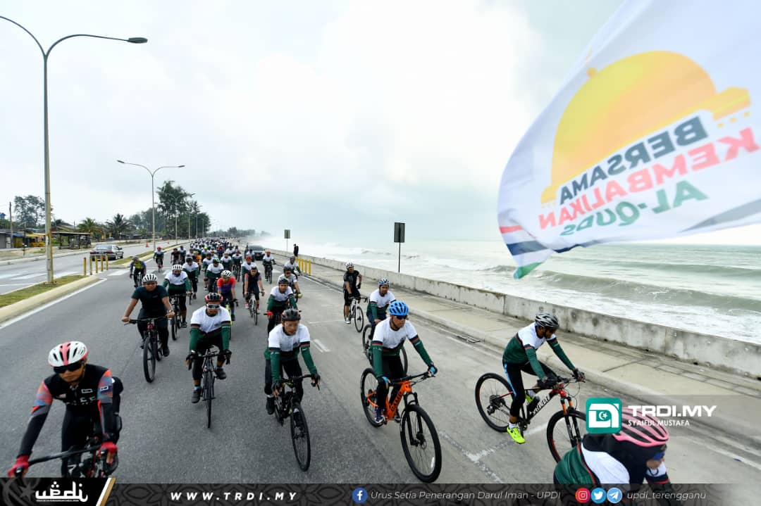 KUALA TERENGGANU, 25 Februari - Seorang Pemuda Palestin, Anas Kamal Abu Alatta menzahirkan perasaan teruja melihat kesungguhan rakyat Terengganu menyertai Program Kayuhan Basikal 'Family Fun Ride' sempena Minggu Al-quds 2023.