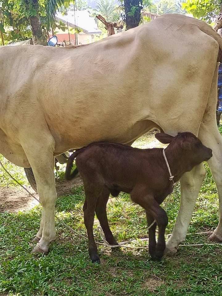 "Ibu putih, anak hitam. Nampaknya ibu lembu ini dapat terima dengan baik anaknya walaupun mungkin tertanya-tanya mengapa warnanya tidak serupa," tambahnya lagi.