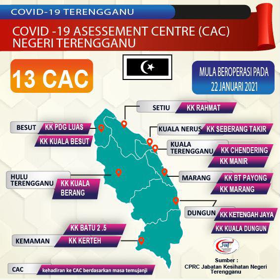 Terdahulu beliau melawat sebuah CAC di Klinik Kesihatan (KK) Chendering, Kuala Terengganu selepas lawatan kerja Pengerusi Bersama Jawatankuasa Teknikal Pengurusan COVID-19 ke Terengganu di Wisma Darul Iman.