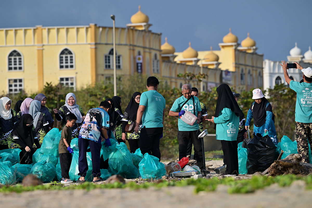 KUALA TERENGGANU, 9 Februari - Pemandangan indah Pantai Batu Buruk kini kembali setelah program gotong-royong mega anjuran Jabatan Tanah dan Galian Persekutuan Negeri Perak (JkPTG) bersama Geng Plastik Ija (GPI) berjaya mengumpul 173.5kg sampah bawaan Monsun Timur Laut (MTL).
