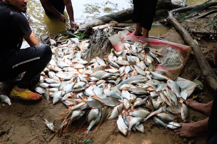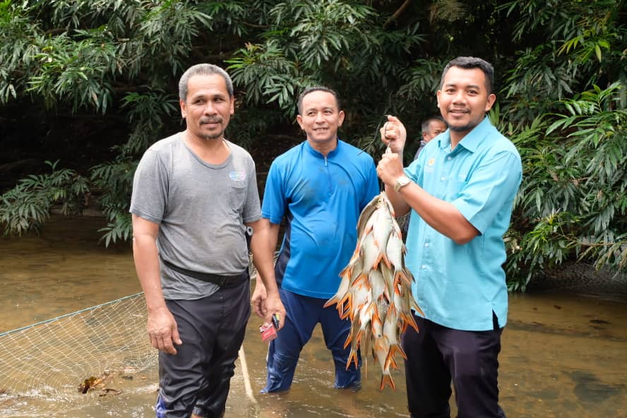 SETIU, 7 Ogos - Sebanyak 500 ekor ikan lampam sungai berjaya dipungut dalam program Ngambak Ikan Komuniti Kampung Payung Bersama Penyelaras Dewan Undangan Negeri (DUN) Langkap.