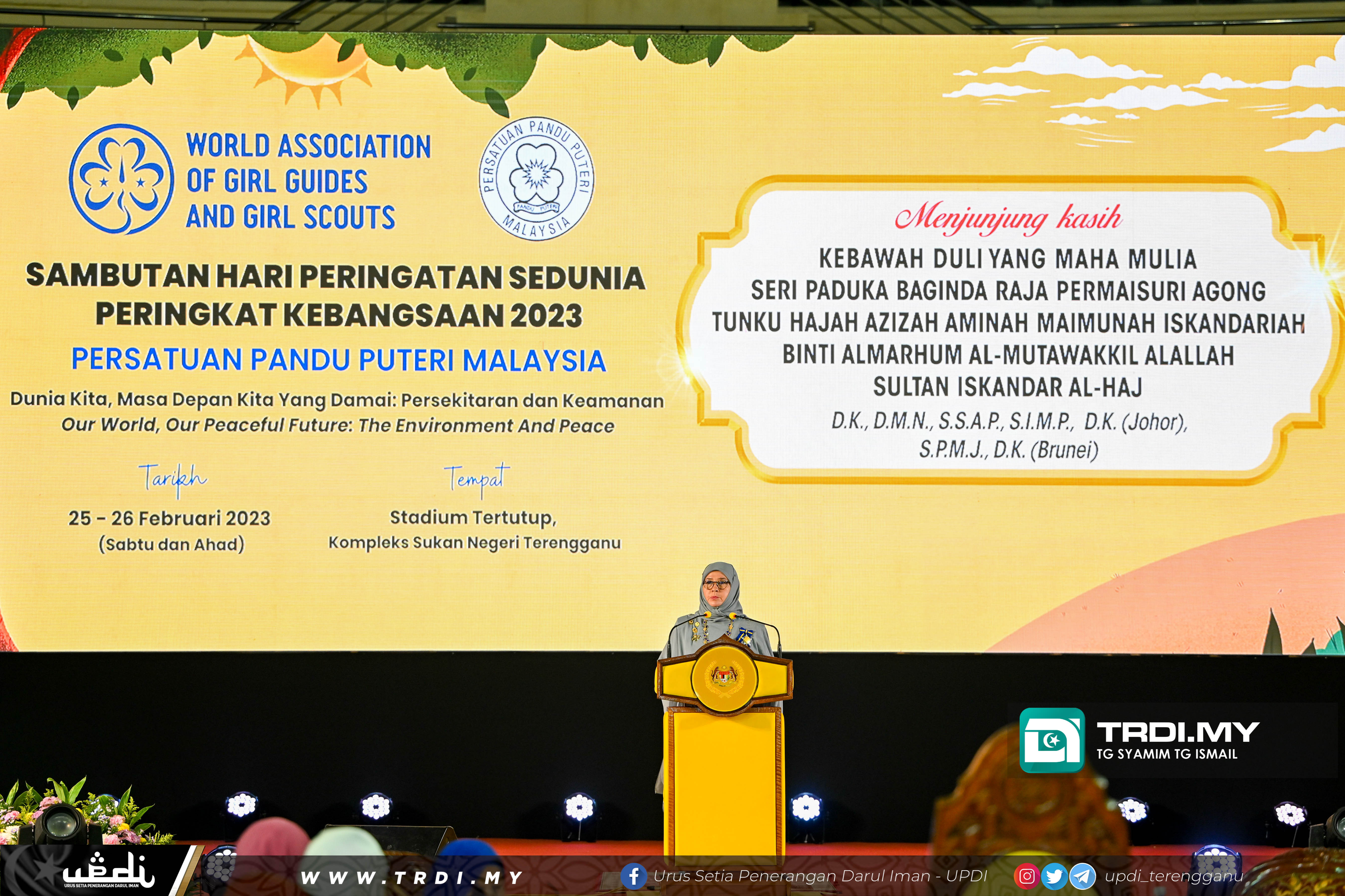 KDYMM Seri Paduka Baginda Raja Permaisuri Agong berangkat ke Majlis Perasmian Penutup Sambutan Hari Peringatan Sedunia Peringkat Kebangsaan 2023 bertempat di Stadium Tertutup, Gong Badak