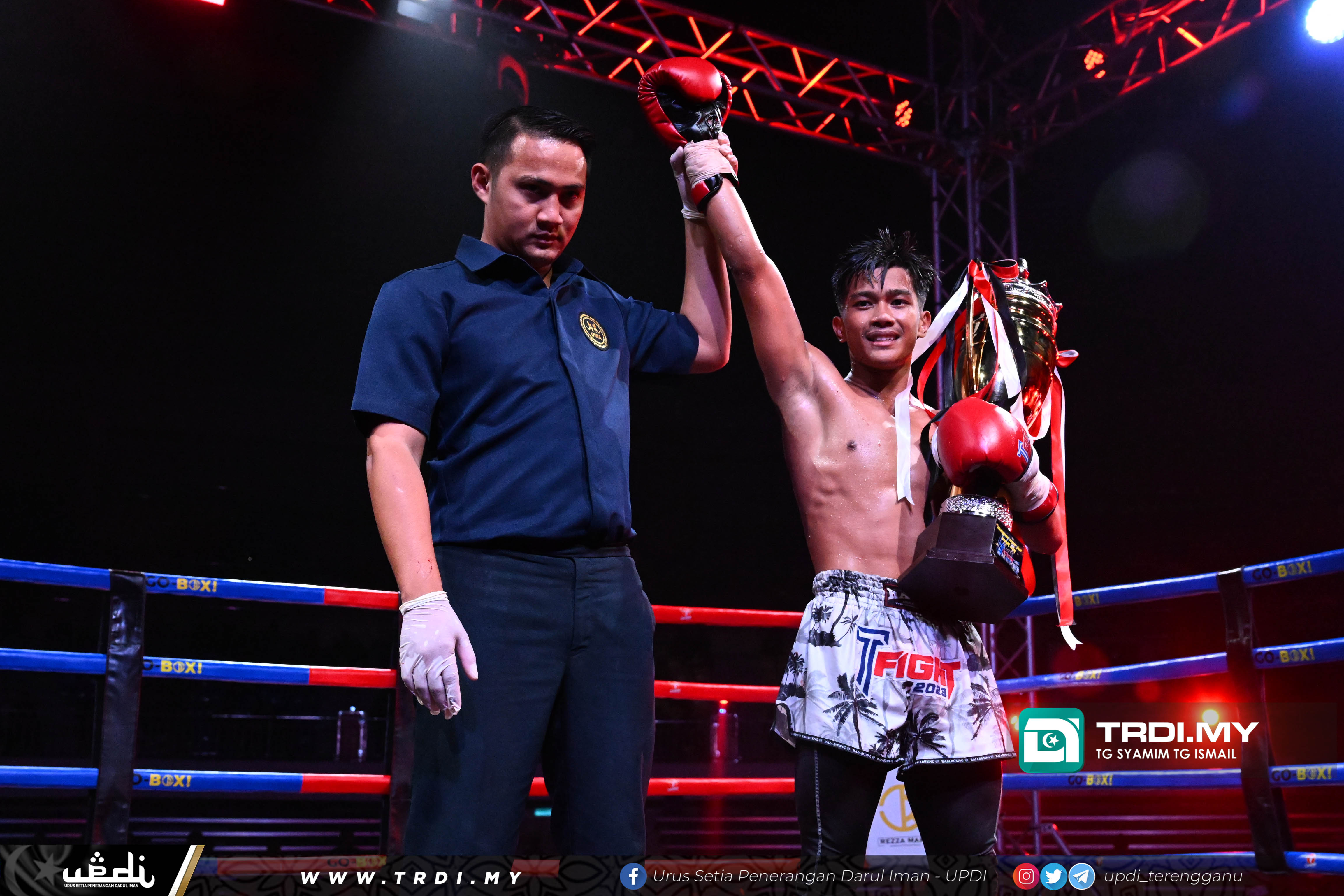 YB Hishamuddin Abdul Karim, Pengerusi Jawatankuasa Pembangunan Belia, Sukan & NGO Menyempurnakan Program Terengganu T-Fight Festival 2023 bertempat di Stadium Tertutup Gong Badak, Kompleks Sukan Negeri Terengganu.