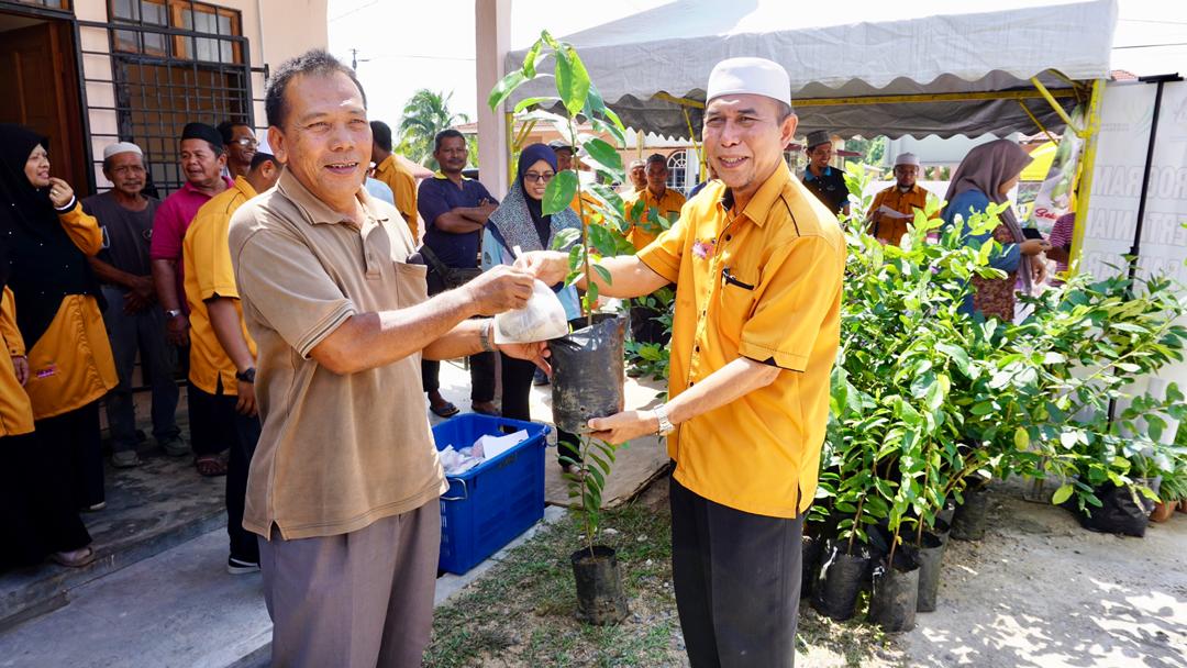 DUNGUN, 14 Julai - Majlis Pengurusan Komuniti Kampung (MPKK) Kubang Miang dengan kerjasama Jabatan Pertanian Daerah Dungun mengagihkan 100 anak pokok Durian Belanda Madu dan Lemon kepada orang ramai sebagai galakan kepada masyarakat untuk menghijaukan persekitaran.