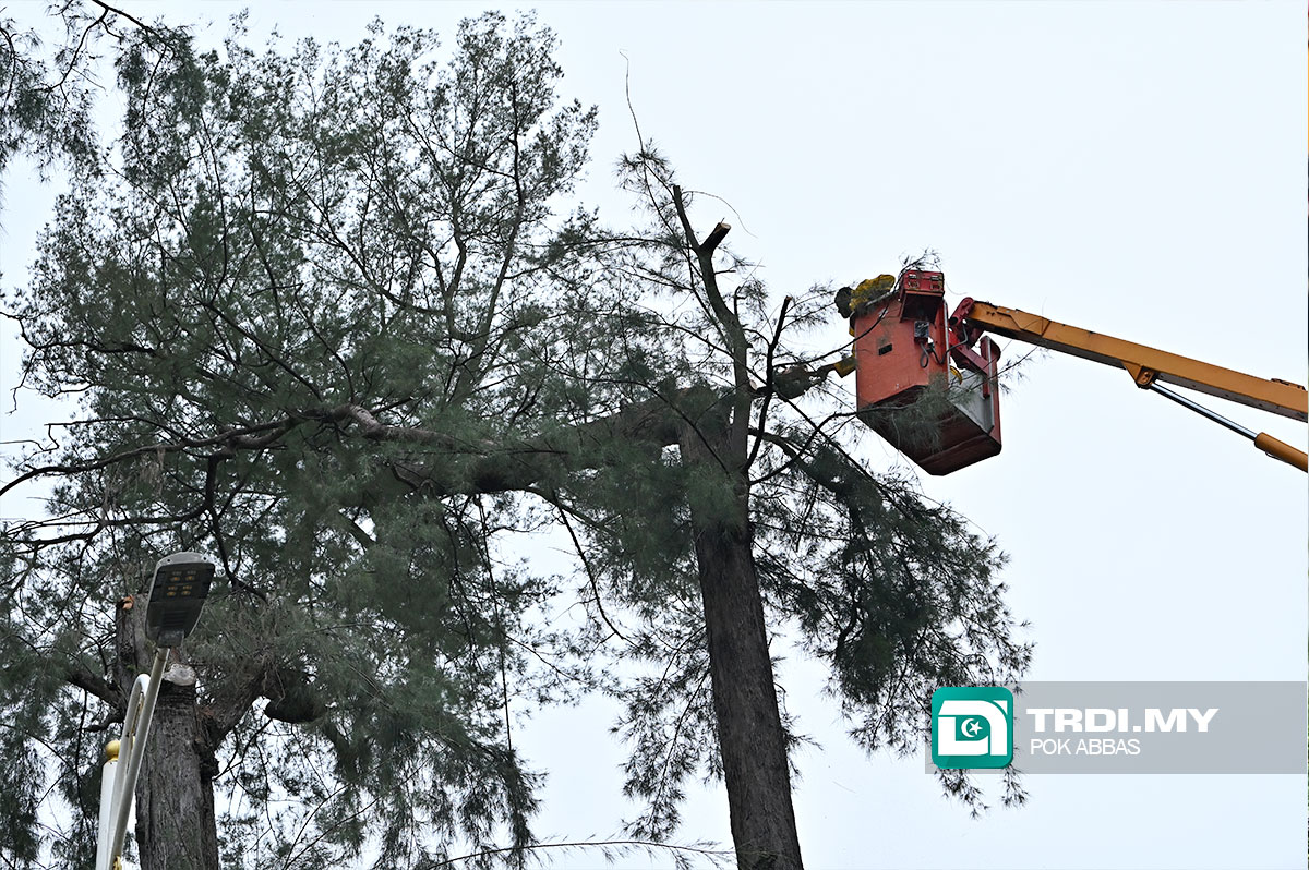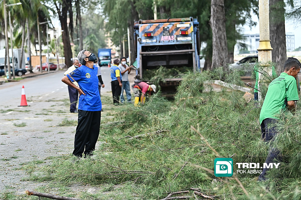 "Apabila tiba musim tengkujuh, hujan dan ribut berlaku, banyak pokok-pokok besar tumbang dan boleh membahayakan orang ramai, jadi pihaknya dengan kerjasama MBKT, memangkas pokok-pokok besar dalam mengelakkan perkara yang tidak diingini berlaku," ujarnya.