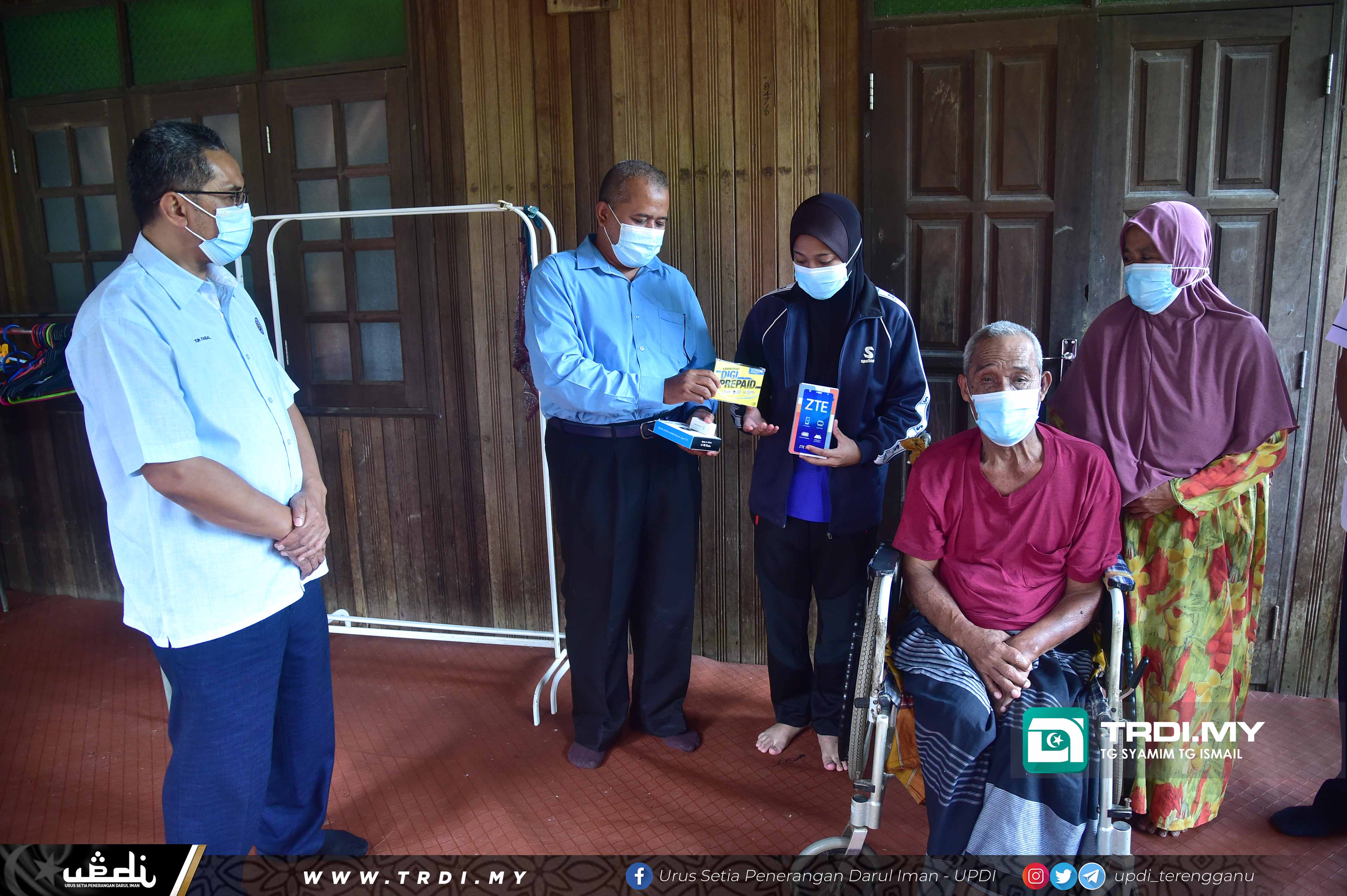Telefon pintar sumbangan pelbagai pihak menerusi program Cakna Didik Marang Hebak inisiatif Pejabat Daerah Marang dengan kerjasama Pejabat Pendidikan Marang itu diserahkan kepada Nur Asyikin Ismail, 17, oleh Pengerusi Jawatankuasa Pelancongan, Kebudayaan dan Teknologi Digital negeri, Ariffin Deraman di rumahnya di Kampung Wakaf Kedondong, disini, hari ini.
