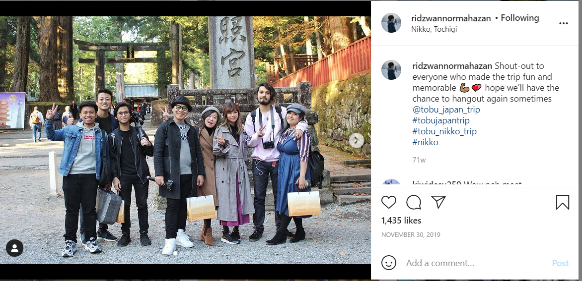 Beliau yang berasal dari Kuala Terengganu berkata, antara tawaran diterima adalah daripada ‘Tobu Railway’ bagi mempromosikan bandar Nikko kepada pengikut di Malaysia.