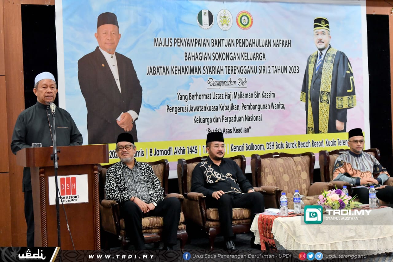 Beliau berkata demikian ketika Majlis Penyampaian Bantuan Pendahuluan Nafkah Bahagian Sokongan Keluarga Jabatan Kehakiman Syariah Terengganu Siri Kedua Tahun 2023 bertempat di Kenari Ballroom, DSA Batu Buruk Beach Resort di sini, baru-baru ini.