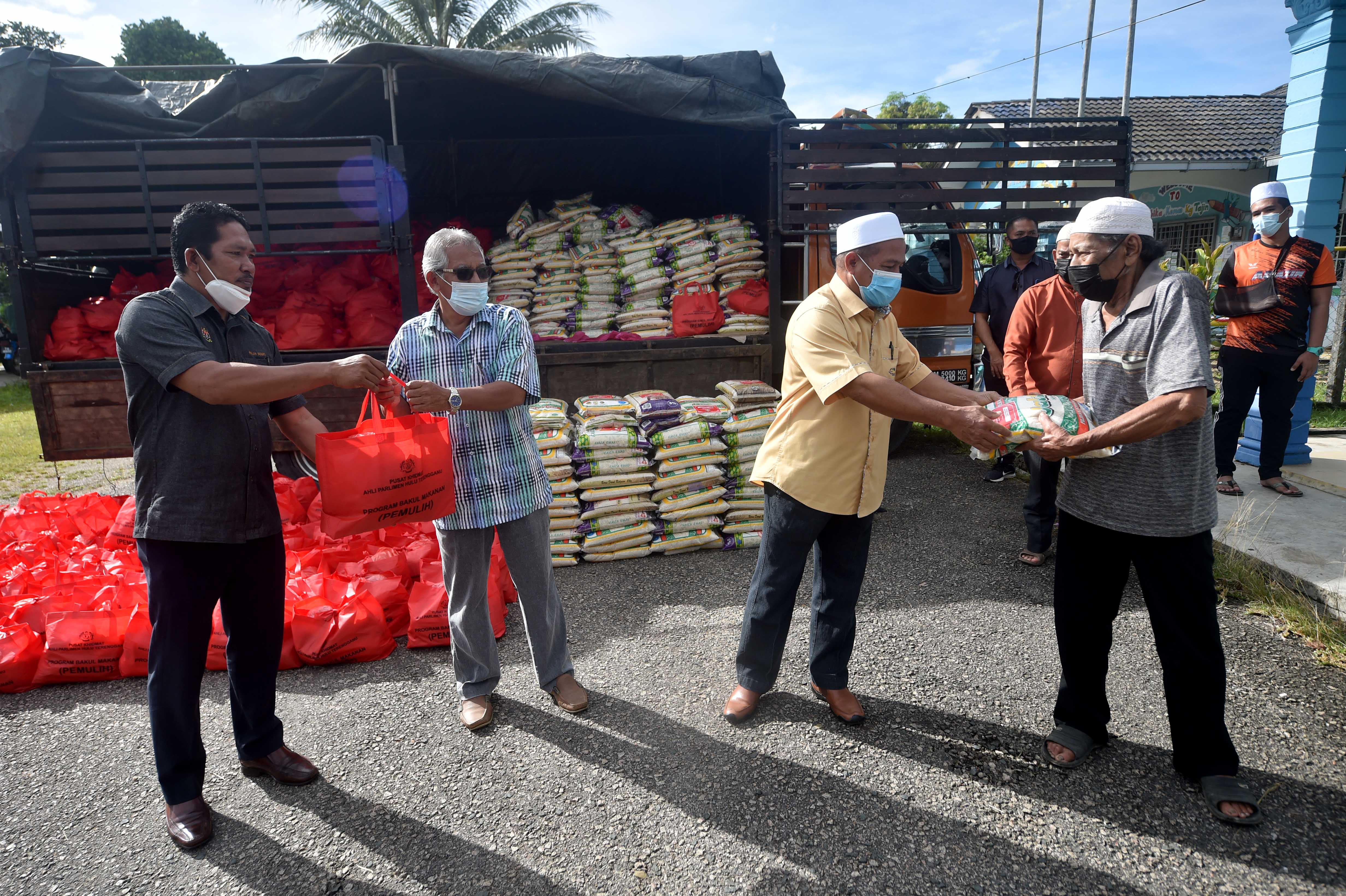 "Pengagihan bermula di DUN Kuala Berang dan Ajil manakala kawasan Telemong dan Manir akan dibuat pada hari esok yang dijangkakan selesai dalam tempoh dua hari sahaja, "ujarnya.