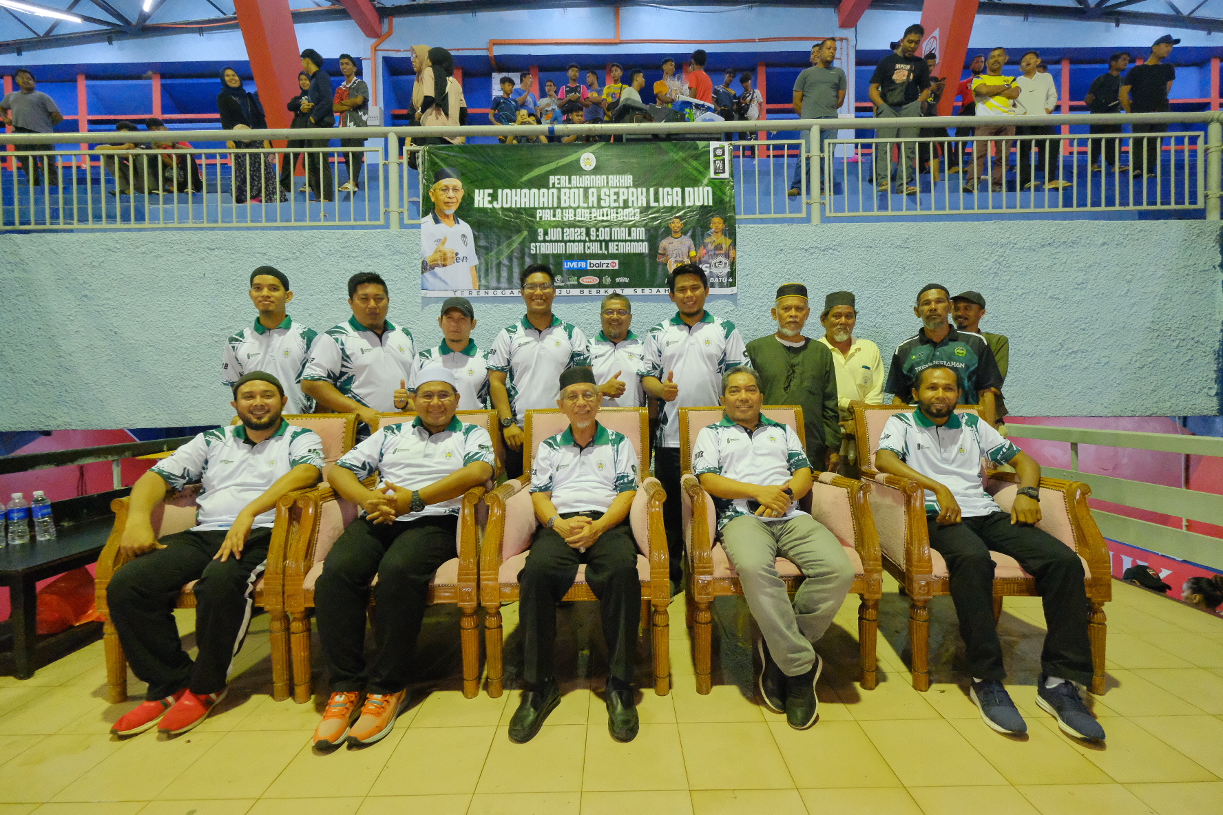 KEMAMAN, 6 Jun - Pasukan Batu 4 muncul juara dalam perlawanan akhir menentang Neram 2 pada kejohanan bola sepak sebelah tertutup dalam Dewan Undangan Negeri (DUN) Air Putih dan membawa pulang Piala Yang Berhormat pada 3 Jun yang lalu.