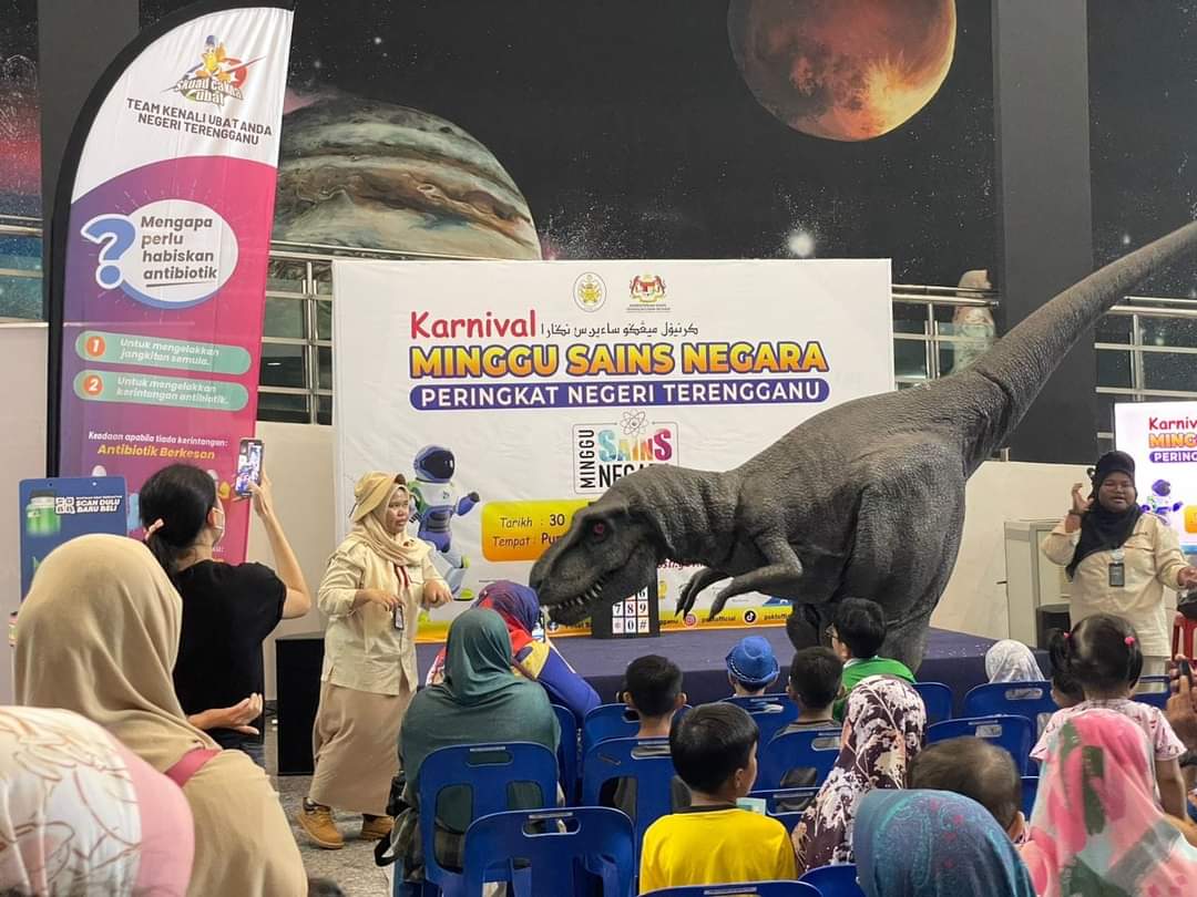 KUALA TERENGGANU, 2 Oktober - Pameran hidupan dinosaur prasejarah menjadi tarikan utama pengunjung di Pusat Sains & Kreativiti Terengganu (PSKT) di sini.