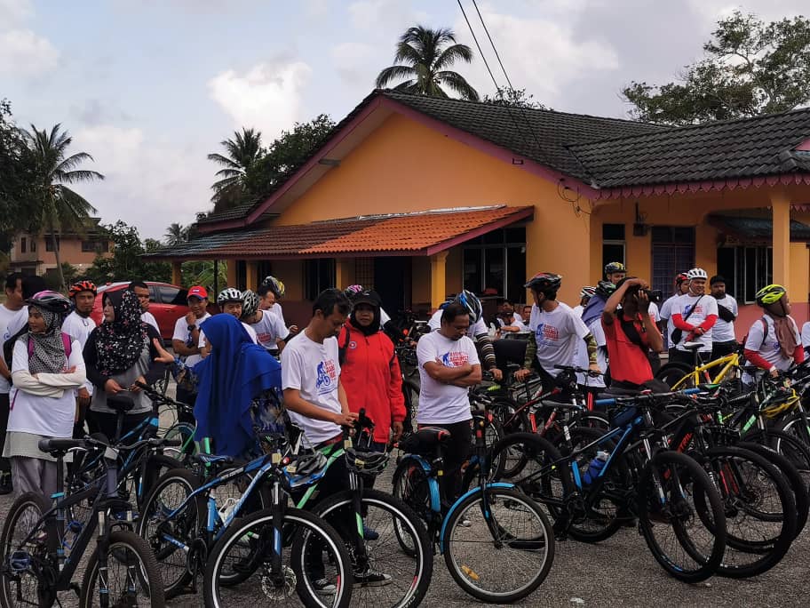 Peserta-peserta seramai lebih 60 orang berbasikal sejauh 15 kilometer (km) bermula Darul Hilmi hingga Masjid Ladang, Kuala Terengganu.