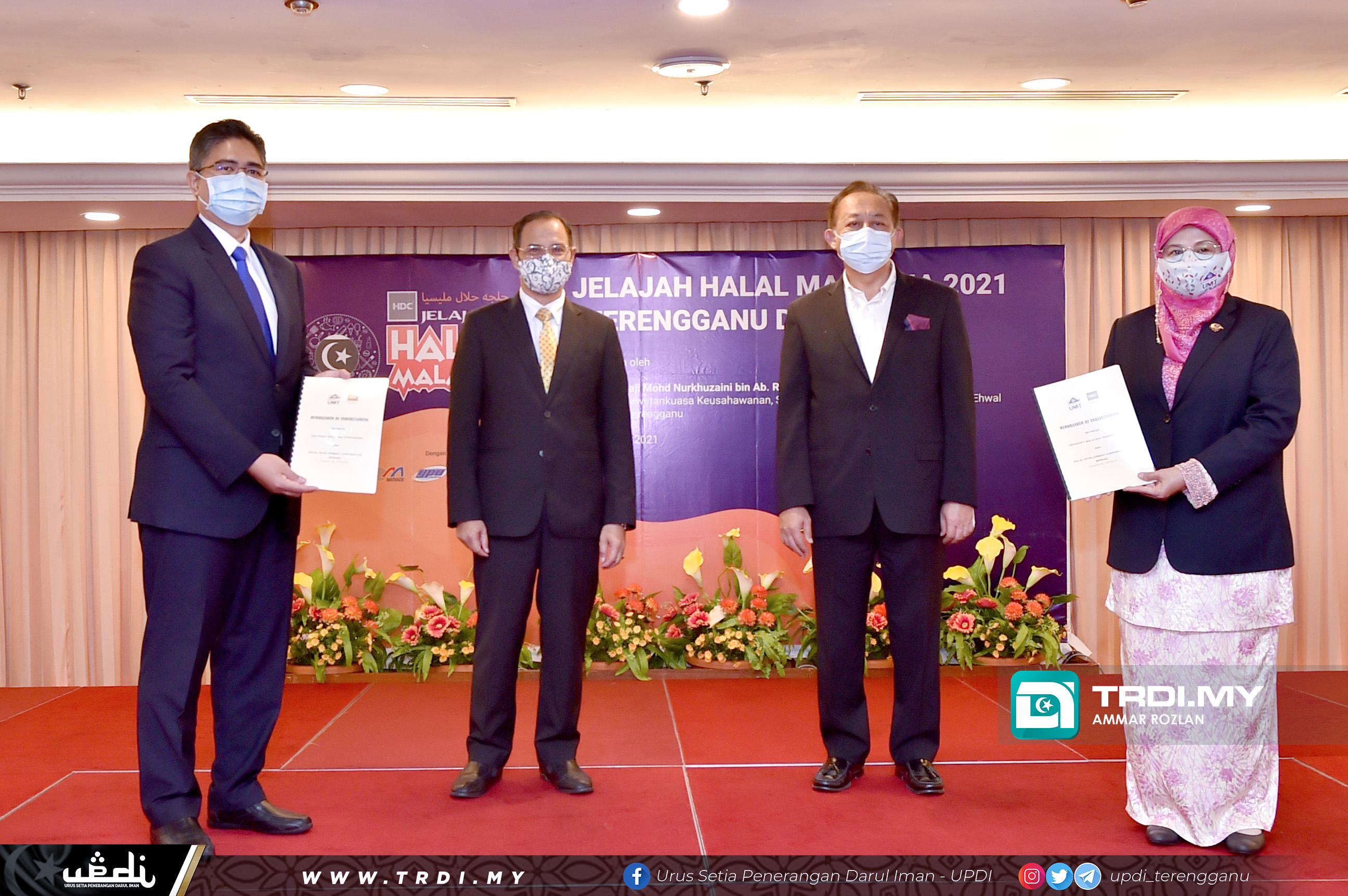 KUALA TERENGGANU, 6 April - Halal Development Corporation Berhad (HDC) hari ini mengadakan usaha sama melalui Memorandum Persefahaman (MoU) dengan Universiti Malaysia Terengganu (UMT) bagi menubuhkan Pusat Inovasi Halal di negeri Terengganu.