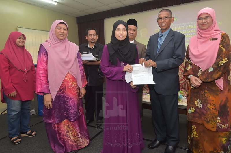 Ganjaran disampaikan oleh Pengerusi Jawatankuasa Kebajikan, Pembangunan Wanita, Keluarga dan Perpaduan Nasional negeri, Hanafiah Mat.Yang hadir sama, Timbalan Pengarah YPKT, Ramlah Idris.