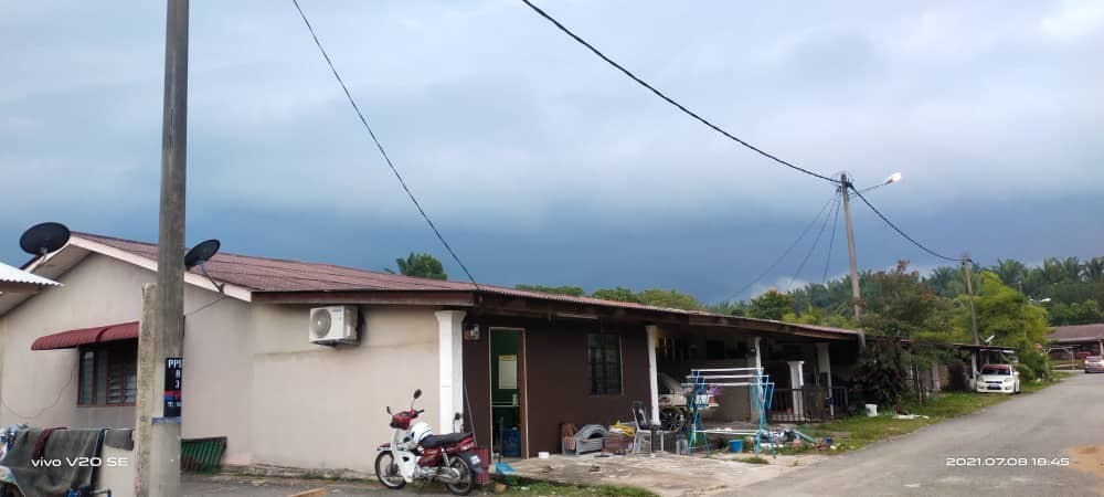 "Kepala angin berpusar datang mengakibatkan atap rumah hadapan terbang menimpa rumah kira-kira jam 6 petang.
