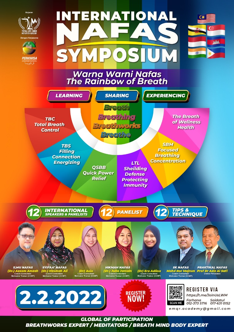 "Pakar-pakar ini akan berkongsi secara teori dan praktikal tentang teknik pernafasan serta kesan positif yang bakal dialami setelah mengamalkannya di samping para peserta akan mendengar perkongsian pengalaman daripada bekas-bekas pesakit yang telah sembuh setelah mengaplikasikan teknik yang diajar.