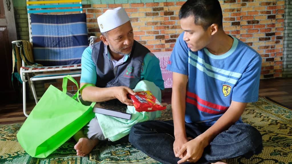 Pada kunjungan tersebut, Mohd Nor Sulaini yang mendapat pendidikan khas dari Progam Pemulihan Dalam Komuniti (PDK) itu turut dihadiahi senaskah al-Quran oleh Ghazali.