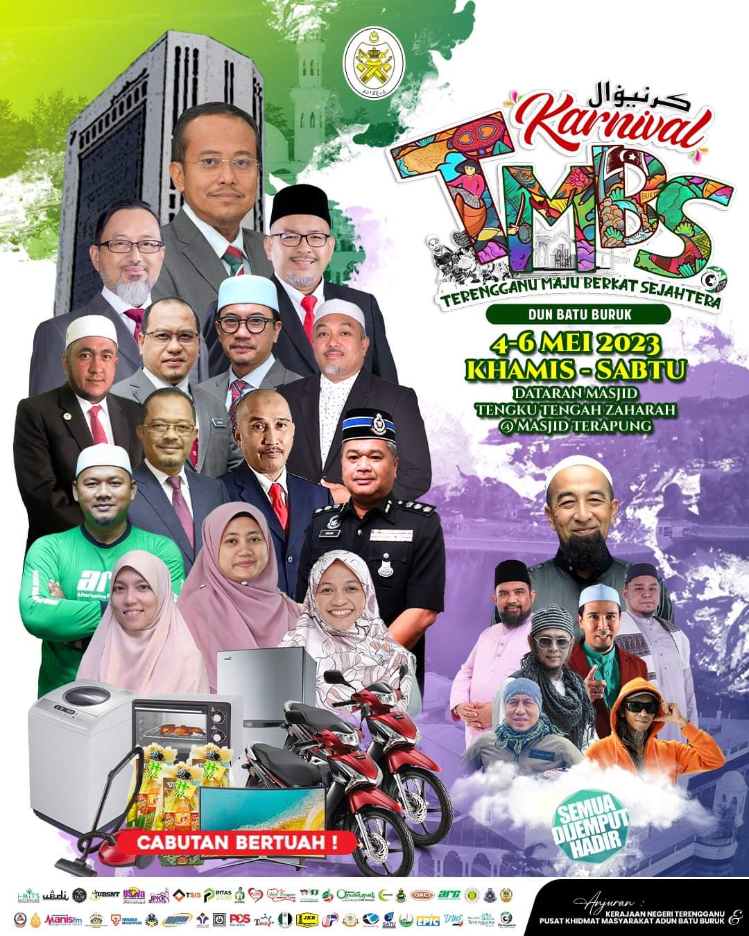 Ahli Dewan Undangan Negeri (ADUN) Batu Buruk, Dr Muhammad Khalil Abdul Hadi menjemput kepada semua masyarakat setempat yang berada di sekitar Kuala Terengganu khususnya di DUN Batu Buruk untuk hadir bagi memeriahkan karnival tersebut.
