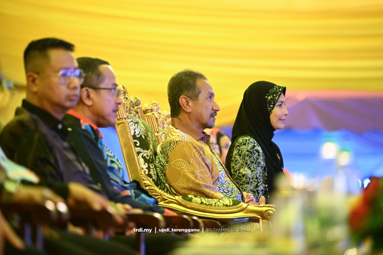 Terdahulu, Baginda berangkat tiba diiringi Sultanah Terengganu Sultanah Nur Zahirah bersama Puteri Daulath Raja pada jam 9.00 malam.
