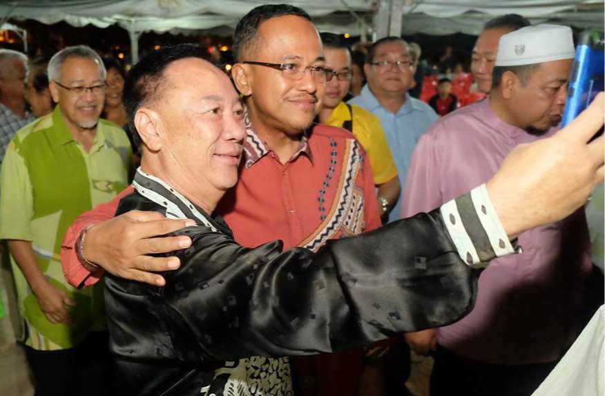 | Ahmad Samsuri berswafoto dengan seorang pengunjung Tionghua di majlis hari raya. Foto oleh Aliffah Hanisfarhana Suhaidi |