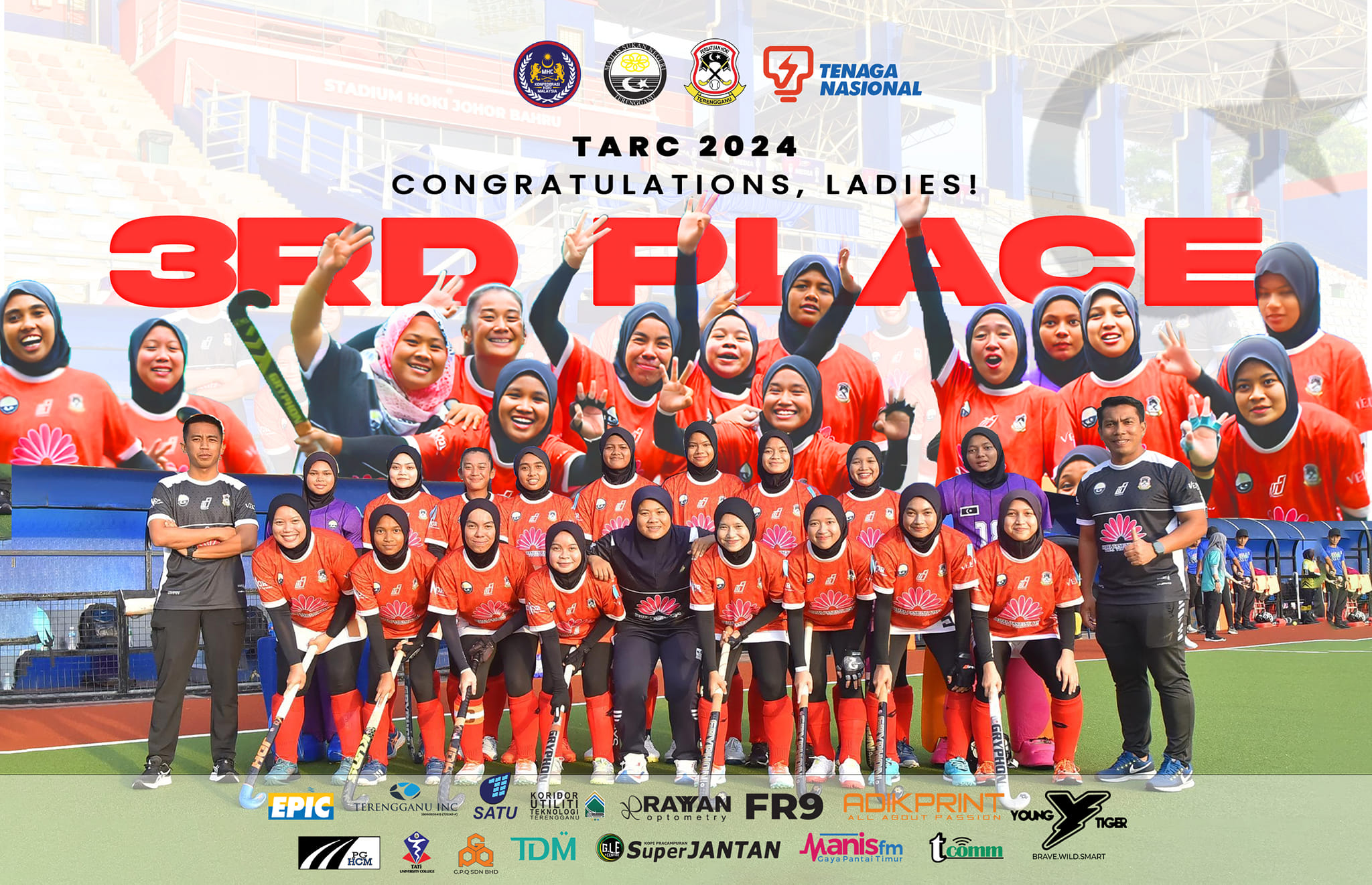 Dalam pada itu, jutaan tahniah turut dirakamkan buat Pasukan Hoki Wanita Terengganu atas kejayaan meraih tempat ketiga dalam Piala Tun Abdul Razak edisi ke-62.
