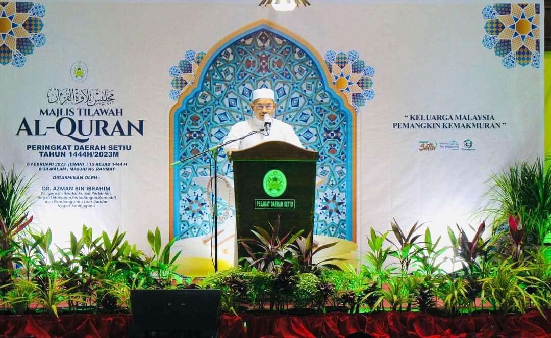 Terdahulu Majlis Tilawah dan Hafazan Al-Quran Peringkat Daerah Setiu dirasmikan oleh Pengerusi Jawatankuasa Pertanian, Industri Makanan, Perladangan, Komoniti dan Pembangunan Luar Bandar, YB Dr. Azman Ibrahim selepas solat Maghrib.