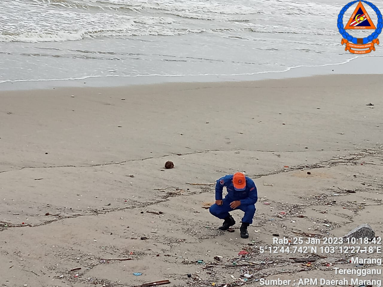 Pegawai Angkatan Pertahanan Awam Malaysia (APM) Daerah Marang, Leftenan (PA) Mujahid Abd Wahab berkata, obor-obor itu dijumpai sekitar jam 10.30 pagi ketika petugas APM melakukan rondaan rutin harian di sekitar pantai tersebut.