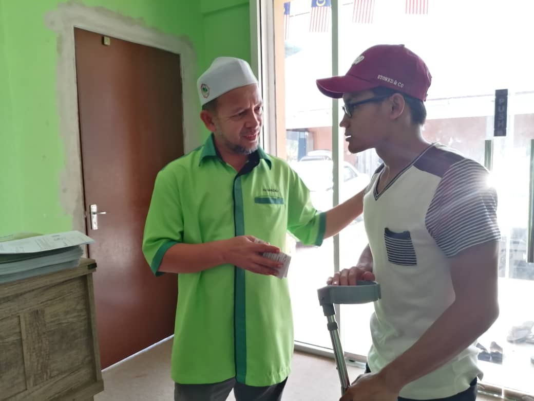 Dengan bantuan tongkat untuk bergerak, Aznim Khusairi tidak pernah mengganggap kekurangan dirinya sebagai penghalang mencapai cita-cita berkenaan.