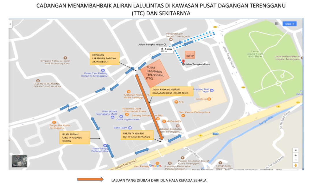 “Justeru, laluan jalan Padang Hiliran (hadapan Giant) akan ditukar dari dua hala ke satu hala bagi melancarkan aliran trafik di kawasan berkenaan,” ujarnya dalam satu kenyataan, hari ini.