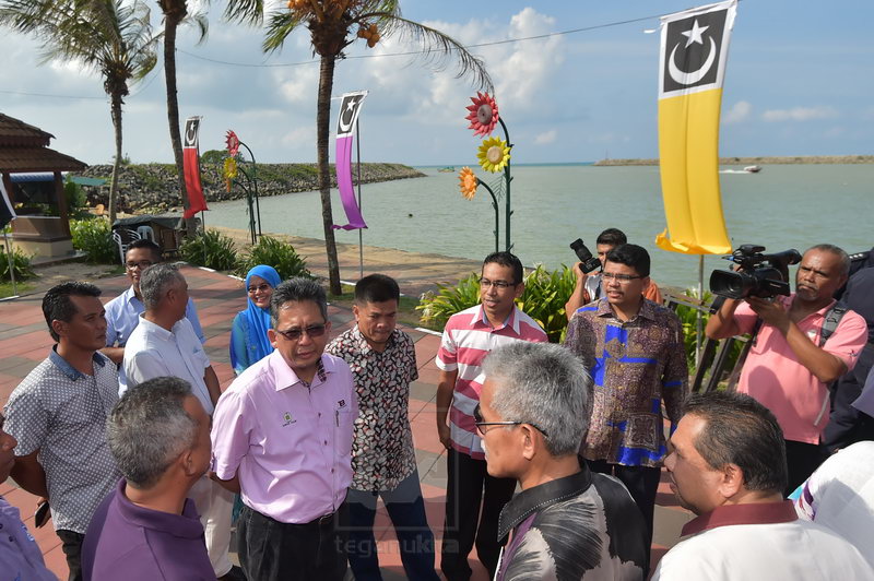 | Menteri Besar, Dato' Seri Ahmad Razif Abd Rahman ketika membuat tinjauan persiapan sempena lawatan dan perasmian pecah tanah projek pemuliharaan muara Sungai Besut, semalam. Foto oleh Harish Fadzilah |