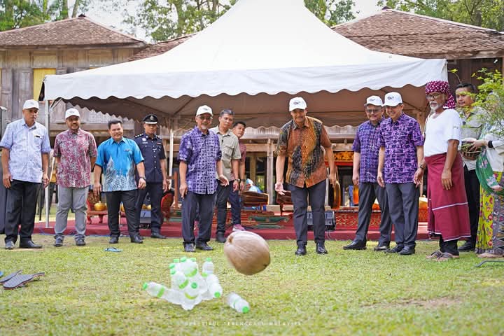 Dalam lawatan sama, baginda dibawa melihat aktiviti demontrasi permainan tradisonal seperti tuju selipar, baling nyiur, ting ting bulu ayam, tapak gajah, terompah gergasi dan gelek rim.