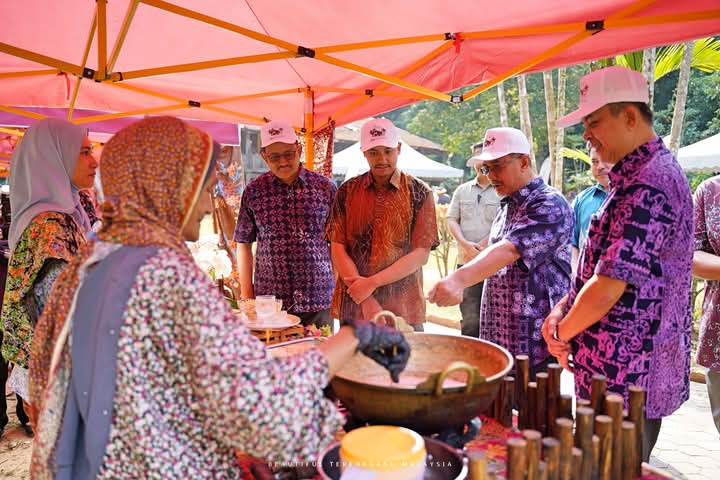 Yang di-Pertuan Muda turut mencemar duli melihat demonstrasi songket, tanjak dan seni telepuk selain demonstrasi memproses makanan tradisional, antaranya laksa kebok, kuih mas cotek, jala emas, lok lik dan ketupat palas.