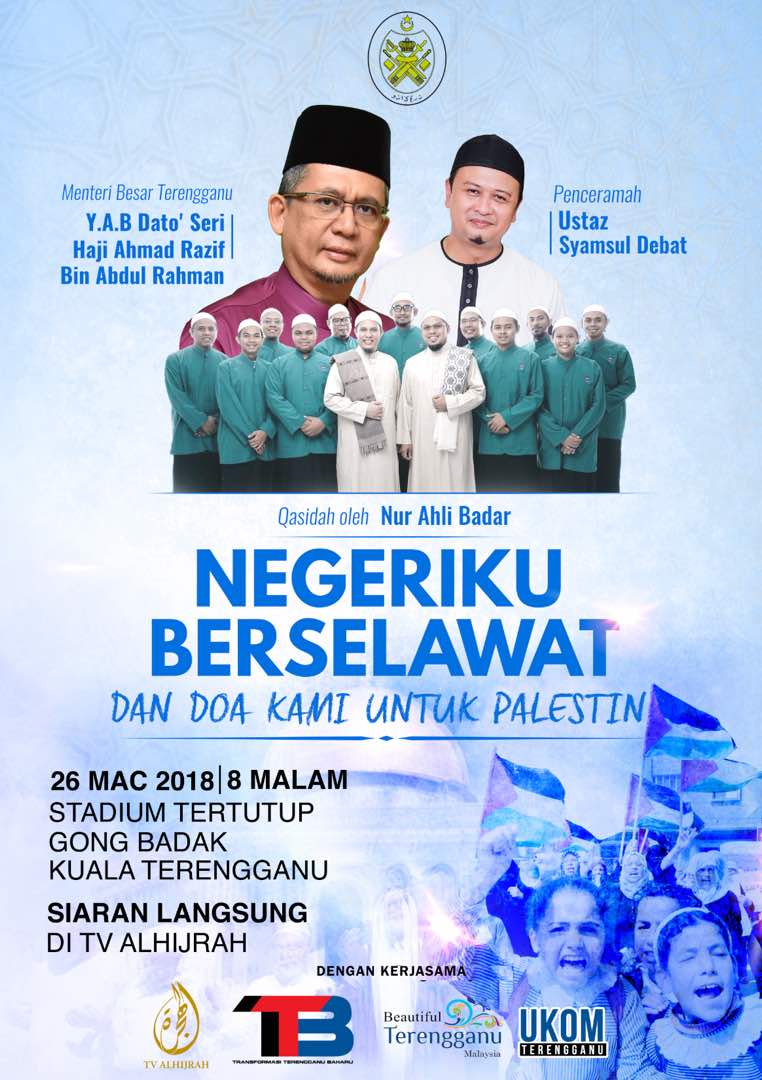 Terengganu bakal menganjurkan program `Negeriku Berselawat dan Doa Kami Untuk Palestin' di Stadium Tertutup Gong Badak, Kuala Nerus pada 26 Mac ini (Isnin).