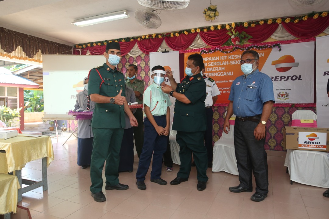 KUALA TERENGGANU, 5 Oktober - REPSOL Oil & Gas Malaysia Limited telah menyumbang kit keselamatan COVID-19 kepada tujuh buah sekolah-sekolah rendah di sekitar Kuala Terengganu bagi mewujudkan keadaan pembelajaran yang selamat buat semua, baru-baru ini.