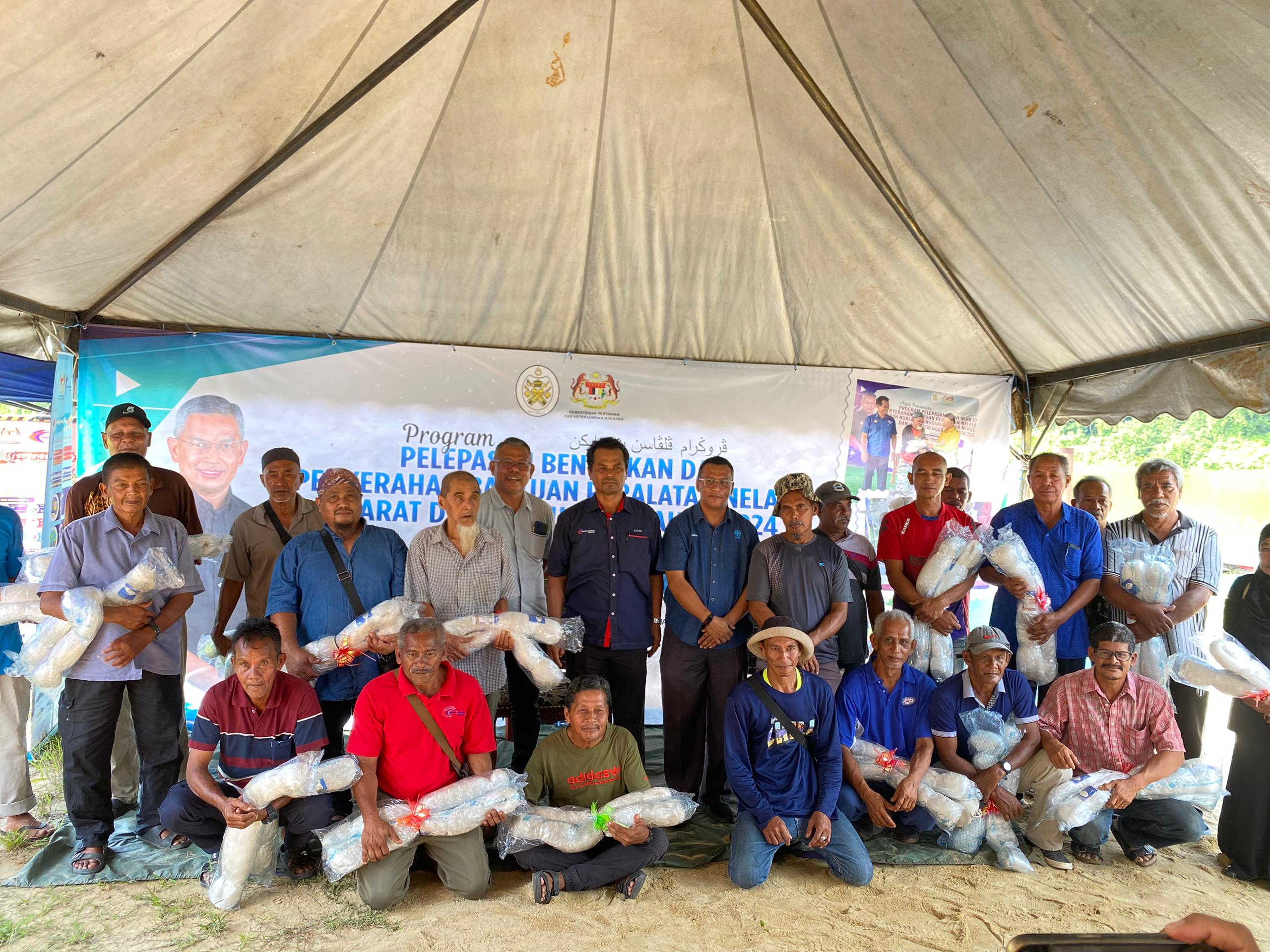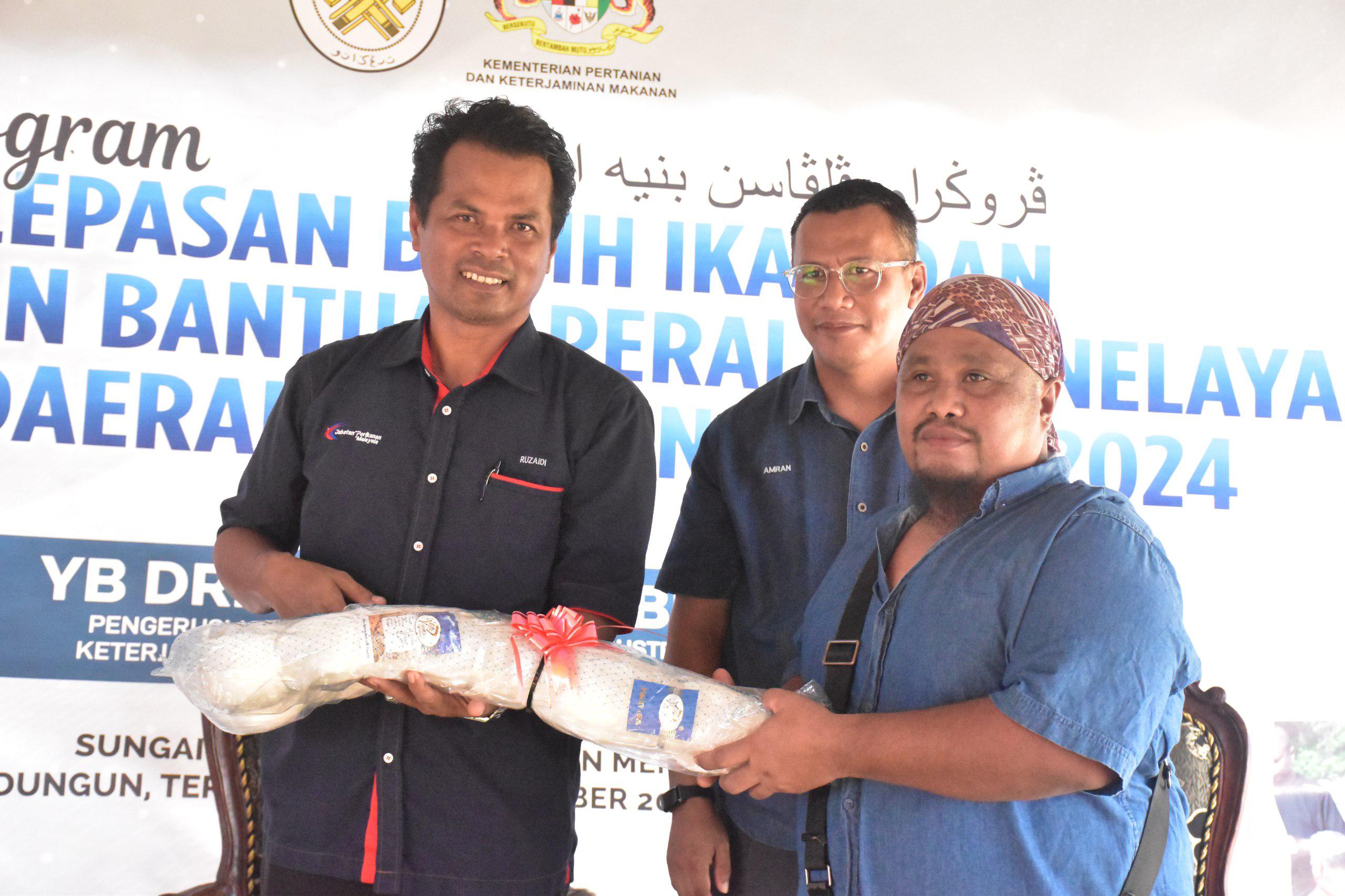 Sempena program berkenaan, seramai 46 orang nelayan darat di daerah Dungun yang berdaftar dengan Jabatan Perikanan turut menerima bantuan berupa dua unit pukat tangsi daripada kerajaan negeri.