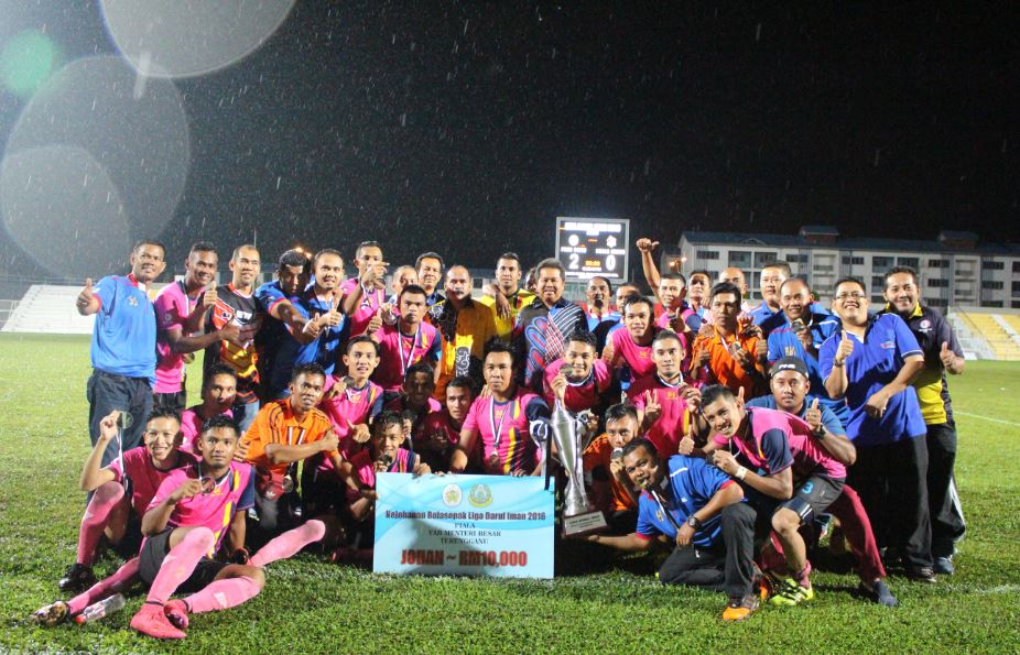 Pasukan Setiu menjulang Piala YAB Menteri Besar Terengganu apabila muncul juara selepas menewaskan Kuala Nerus 2-0 di Kejohanan Bola Sepak Liga Darul Iman 2016, di Stadium Sultan Ismail Nasiruddin Shah, Kuala Terengganu, malam tadi.