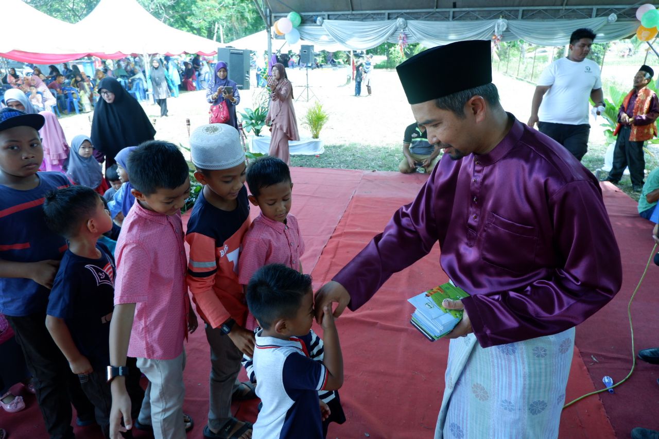 Majlis bertambah meriah apabila ADUN menyampaikan sumbangan duit raya kepada kanak-kanak yang hadir.