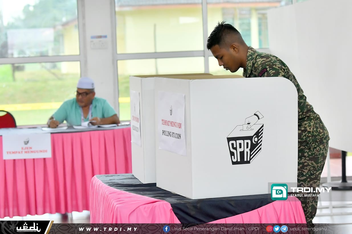 Pengundian awal dilaksanakan di Dewan Seri Terengganu yang dibuka seawal jam 8.00 pagi melibatkan saluran satu dan dua.