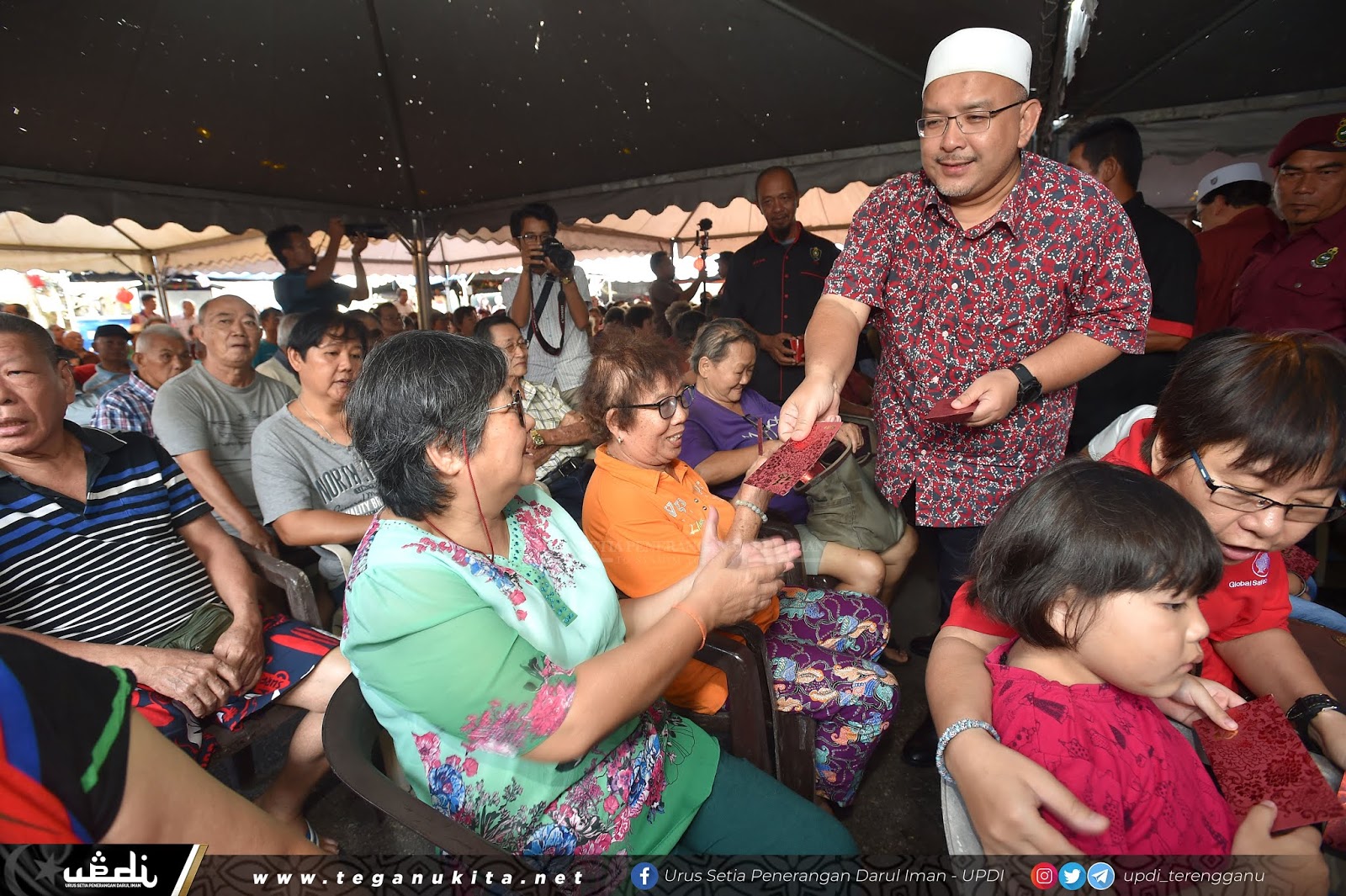 | Wan Sukairi mengagihkan Ang Pau kepada kaum Tiongha yang hadir ke Majlis Sambutan Tahun Baru Cina di Kampung Tiong. |